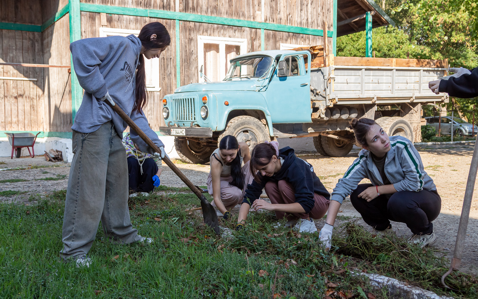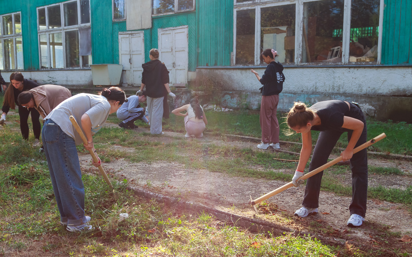 Студенты прибирали закреплённые за их факультетом домики, приводили в порядок прилегающую к ним территорию. Ребята протирали пыль, мыли и красили полы и окна, выносили ненужные вещи, подметали дорожки, косили траву, пропалывали газоны, собирали сухие ветки и листья, подрезали кустарники. Работы хватало всем! При этом делали все весело, с настроением, под песни, шутки и музыку.
