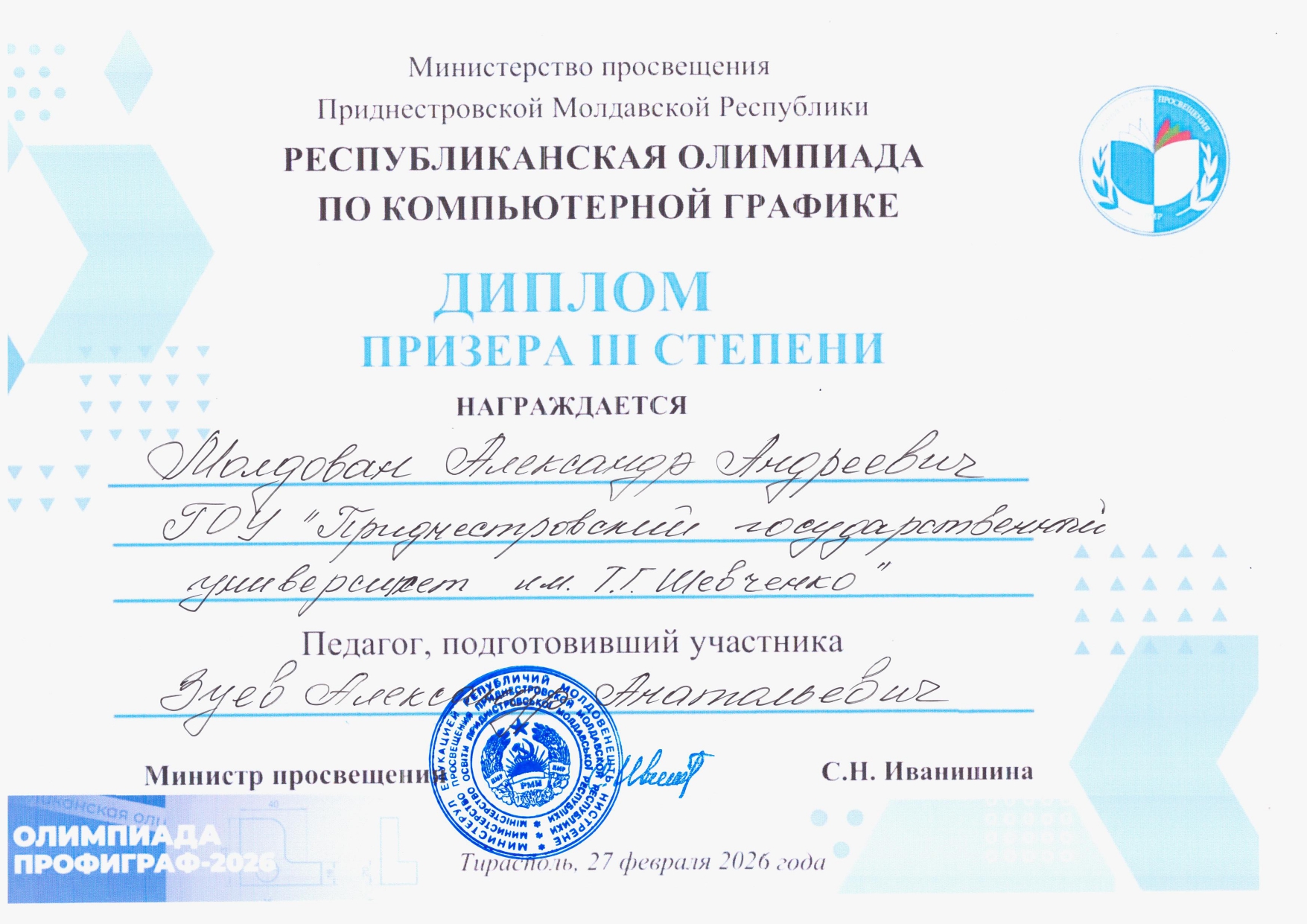 Финал Республиканской олимпиады по компьютерной графике «ПрофиГраф-2026» состоялся 27 февраля на базе Днестровского техникума энергетики и компьютерных технологий.